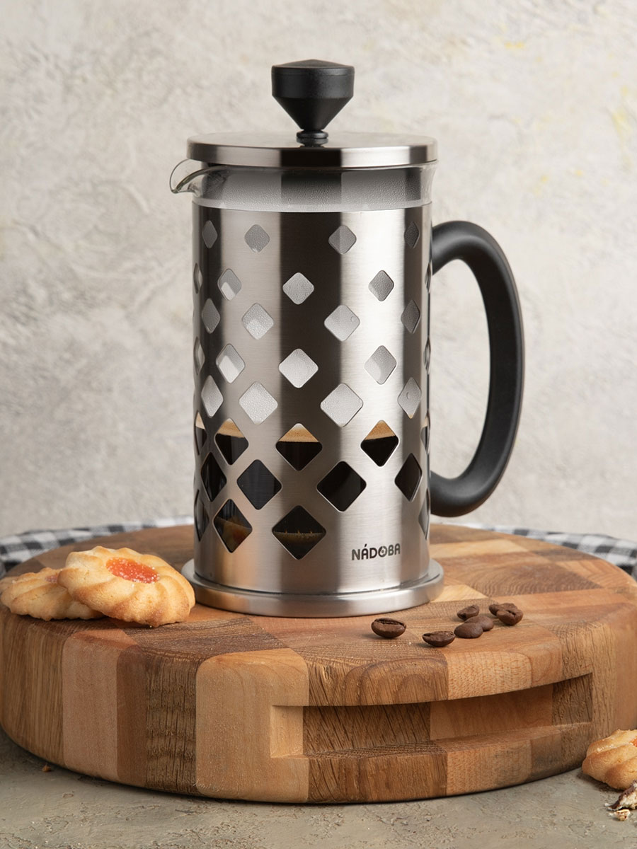 Френч-пресс из нержавеющей стали 18/10 NADOBA серии Jakob идеальный помощник для заваривания не только ароматного кофе — душистые чаи, прохладительные лимонады. А какая воздушная пенка получается для латте или капучино…