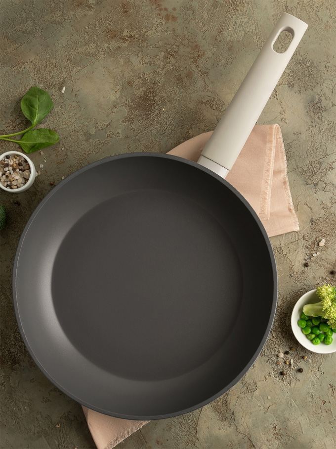 Удобная бакелитовая ручка с бархатным на ощупь покрытием «Софт-тач» не нагревается, обеспечивая удобный процесс готовки без ожогов и дискомфорта.