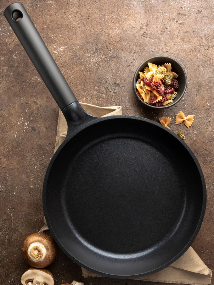 Серия выполнена из литого алюминия в стильном угольно-черном цвете. Многослойное антипригарное покрытие последнего поколения ILAG Ultimate® сохранит целостность продуктов и избавит Вас от долгого мытья посуды. Сполоснул, и она чистая!