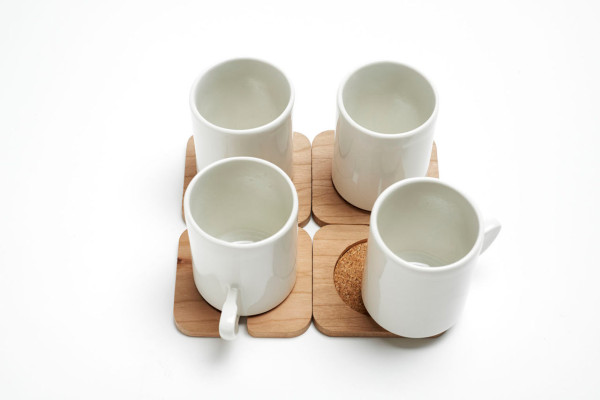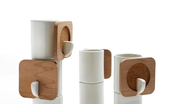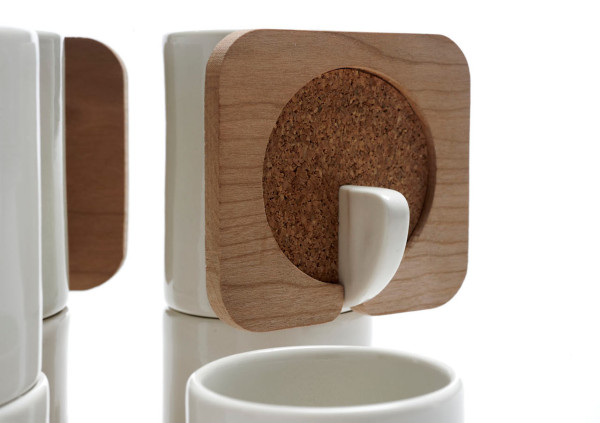 Кружки имеют особую форму - на их ручки, похожие на плавник акулы (fin с английского переводится как плавник), можно нанизывать специальные подставки из пробки и дерева. Сами кружки отлично штабелируются.