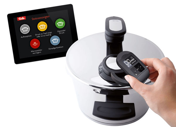 Интеграция посуды со электронными гаджетами - относительно новое слово в производстве кухонной посуды. Один из удачных примеров - скороварки Fissler с функцией Vitacontrol, помогающим контролировать процесс приготовления посредством мобильного устройства (смартфона или планшета). Пока подобные устройства выглядят экзотикой, но вполне возможно, что молодому поколению кулинаров они придутся по вкусу.