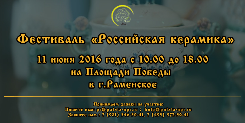 Некоммерческое Партнерство «Палата народных промыслов и ремесел» при содействии Комитета по культуре и туризму администрации Раменского района в День города Раменское, 11 июня 2016 года с 10.00 до 18.00 проводит на Площади Победы в г. Раменское фестиваль «Российская керамика».