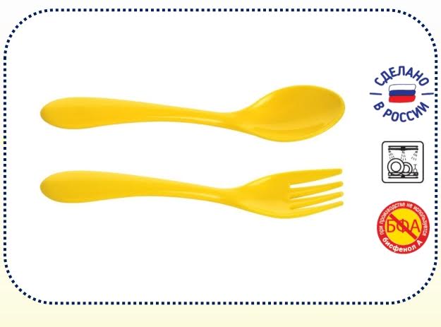 Столовые приборы изготовлены в уменьшенном размере, чтобы крохе было легче с ними управляться. Удобные ручки столовых приборов способствуют хорошему захвату, что не дает малышу выронить их или опрокинуть еду на себя. Закругленные края столовых приборов «Курносики» не травмируют десны и зубки ребенка во время еды.
