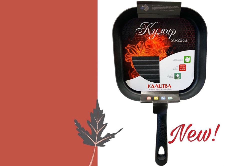 Компания «Алюминий Металлург Рус» (торговая марка "Калитва") представила новинку: сковороду-гриль из коллекции Кумир. Изделие имеет рифленое дно, лицензионное покрытие Teflon Classic, нанесенное методом напыления, стенки высотой 45 мм и оригинальную квадратную форму.