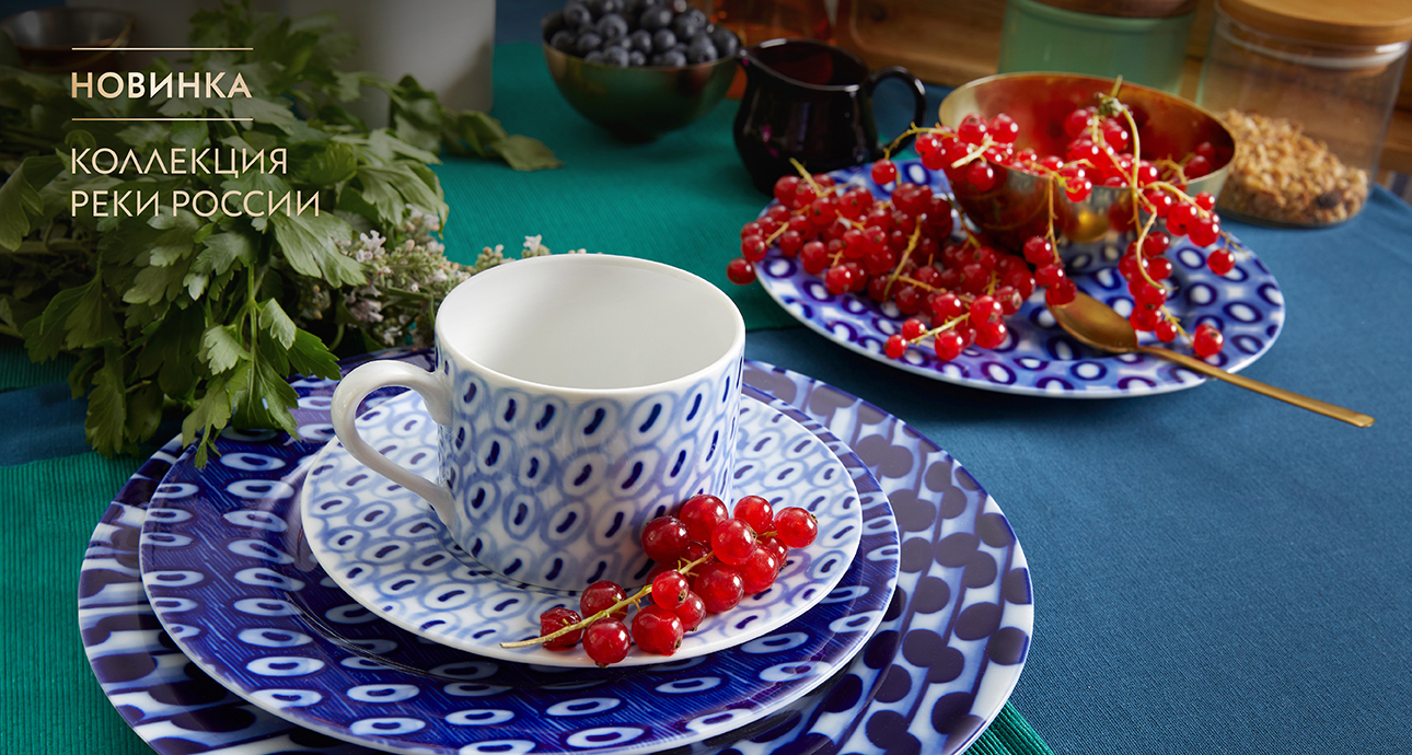 Императорский фарфоровый завод выпустил новую коллекцию "Реки России". Ее автор - ведущий художник ИФЗ Вера Бакастова. Дизайн посуды построен на необычной игре оттенков синего, геометрических орнаментах и "живых" поверхностях. Отправной точкой для творчества художника стала стихия воды и близость человека к природе.