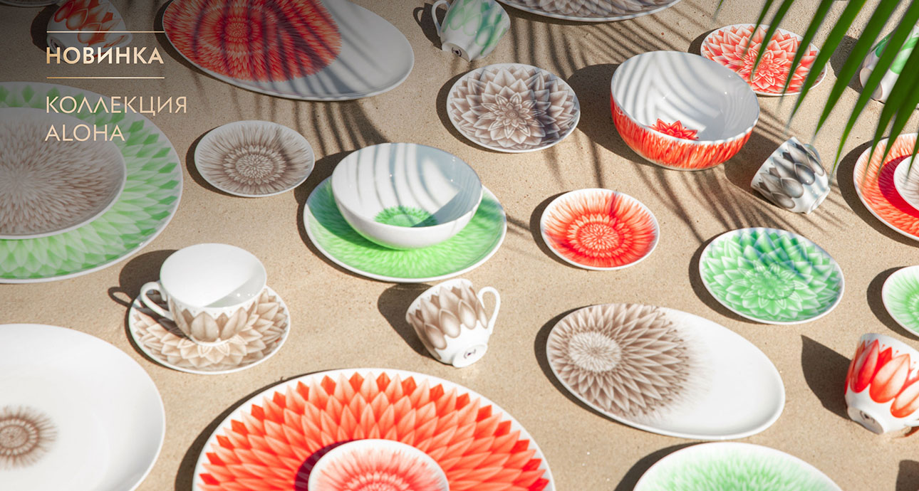 Императорский фарфоровый завод представил новую коллекцию посуды ALOHA, названную в честь гавайского слова, обладающего множеством значений: его говорят, когда здороваются, прощаются, желают любви и добра.