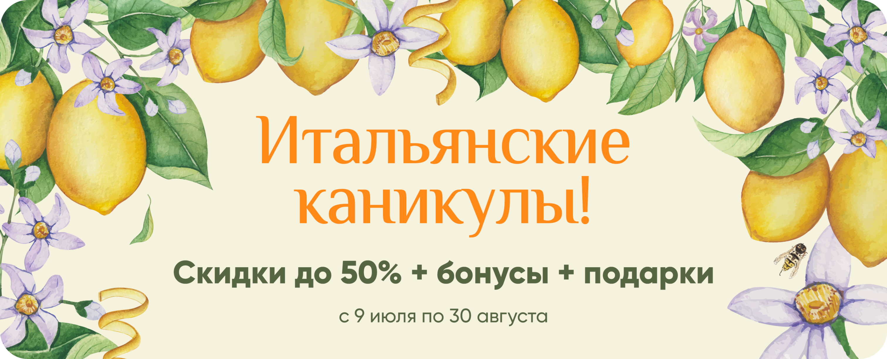 До 30 августа 2025 года в магазинах "Твой Дом" проходит акция "Итальянские каникулы". На товары итальянских марок действуют скидки до 50%, также действует бонусная программа и розыгрыши призов. В посудной категории в акции представлены товары торговых марок RCR, Tognana, Easy Life и др.