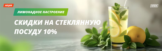 До 31 августа 2025 г. в компании "Клен" проводится акция. Покупателей ждет скидка 10% на выделенный ассортимент посуды из стекла. В акции представлены бокалы и кружки для пива, креманки, стаканы, кружки для чая и кофе и т.д.