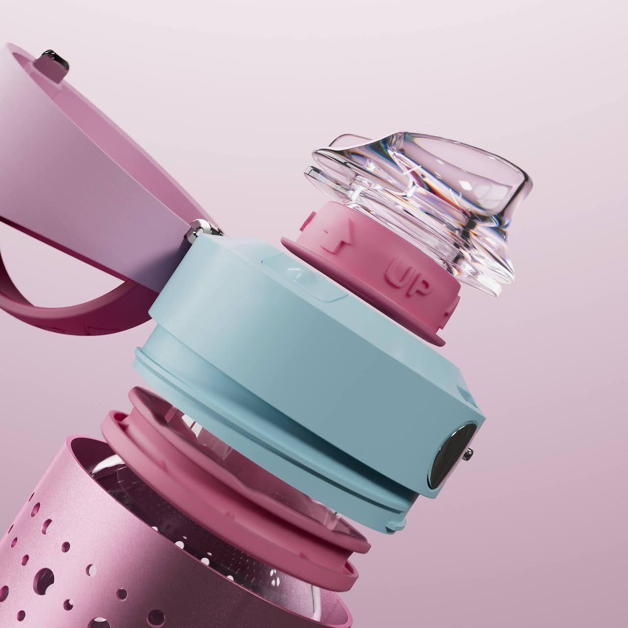 Бутылочки открываются кнопкой, выполненной из нержавеющей стали Nitronic 60. Для этой операции достаточно одной руки. Специальная пружина с титановым фиксатором обеспечивает плавное открытие и закрытие крышки и надежно удерживает ее в открытом состоянии.