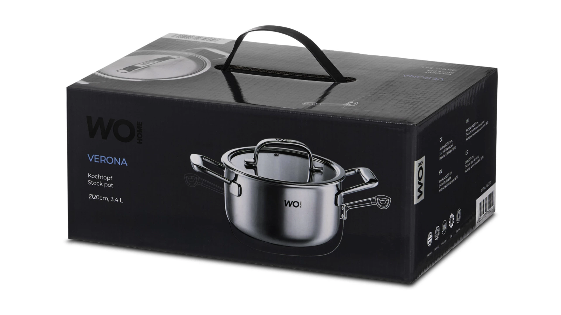 В магазинах Williams Oliver в продажу поступила новая серия посуды из нержавеющей стали Verona собственной торговой марки WO HOME. В нее вошли ковш 1,6 л, кастрюли объемом 2,5 л, 3,4 л, 5,6 л, а также наборы посуды. Предметы коллекции имеют трехслойный корпус общей толщиной 2,6 мм, ручки с креплением на сварке, стеклянные крышки с металлическим ободкой, мерную шкалу.