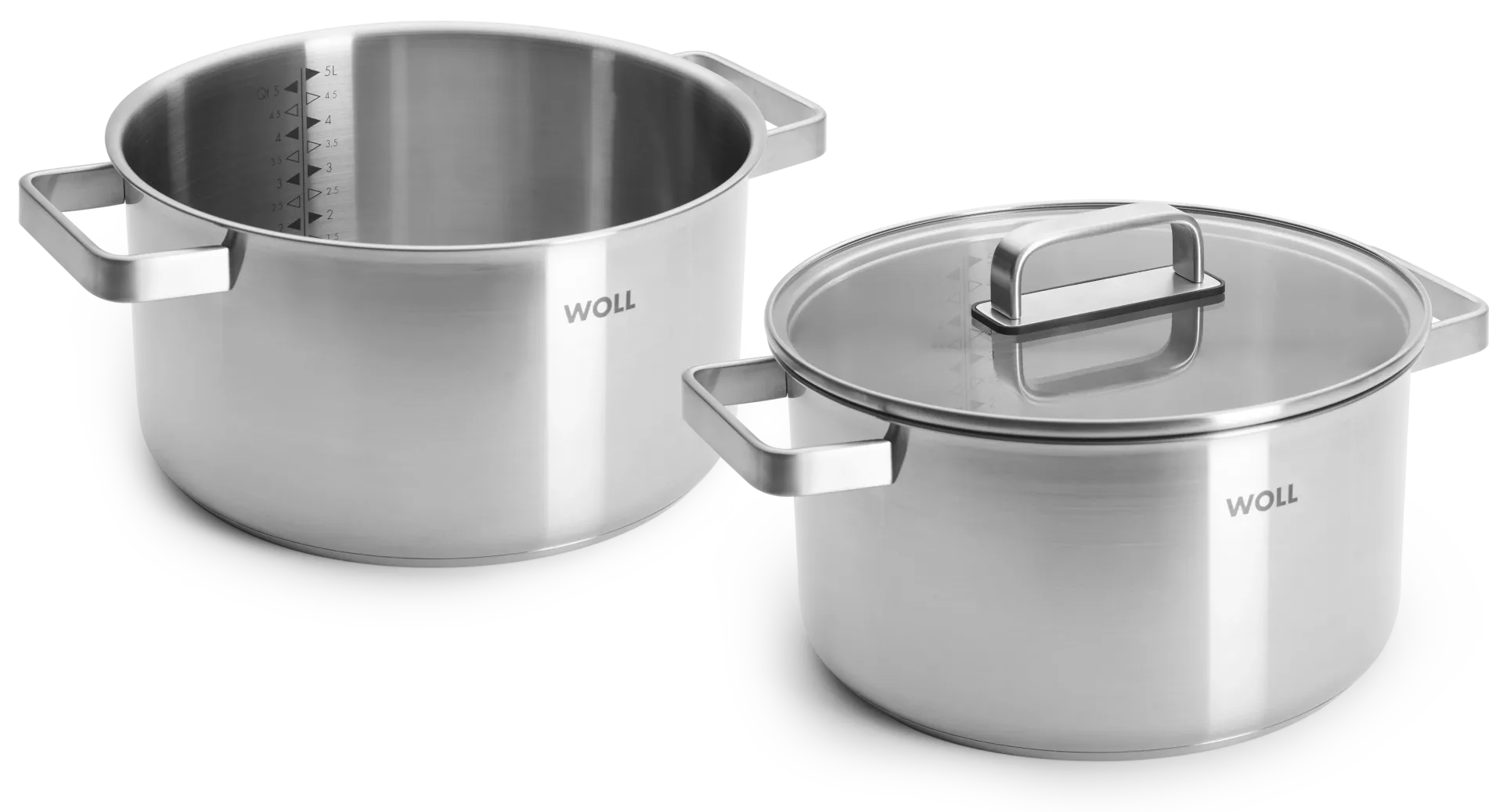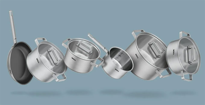 Немецкий бренд WOLL представил коллекцию посуды для приготовления Steel - в ней сочетается привлекательный внешний вид и простота ухода. В коллекцию входят базовые предметы: ковш, кастрюли нескольких размеров и сковороды с антипригарным покрытием. Все предметы выполнены из нержавеющей стали 18/10 с матовой полировкой, заявленная толщина дна - 5 мм.