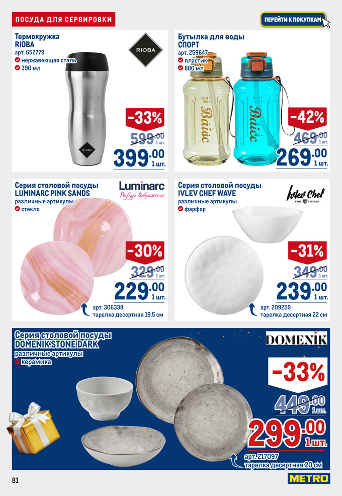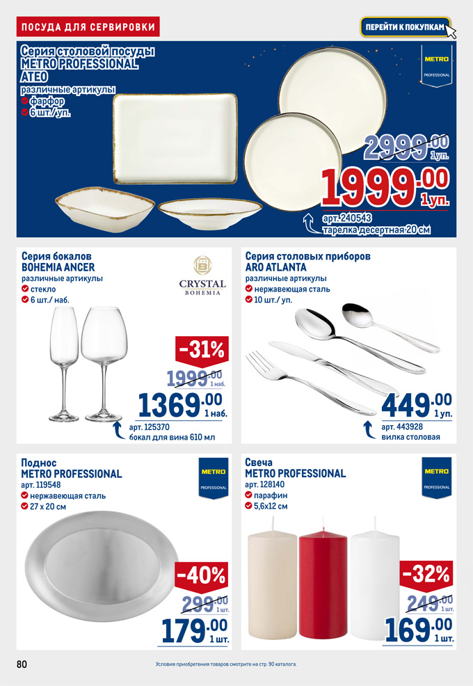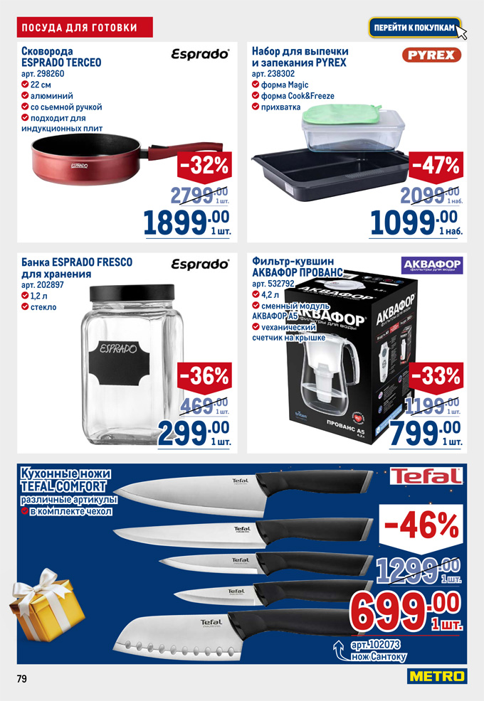 В сети магазинов METRO с 9 по 22 октября 2025 года действуют специальные цены на товары из акционного каталога "Хиты продаж". В посудном разделе представлена продукция из ассортимента торговых марок "Нева металл посуда", Tefal, Esprado, Aro, Pyrex, Bohemia Crystal, Luminarc, Ivlec Chef и др.