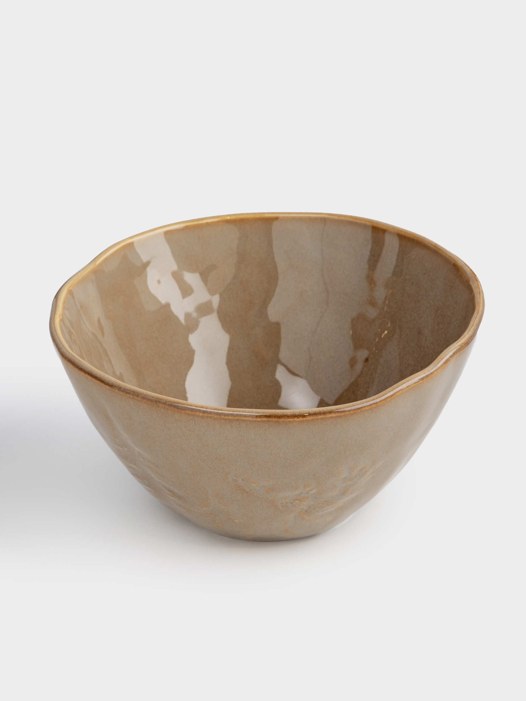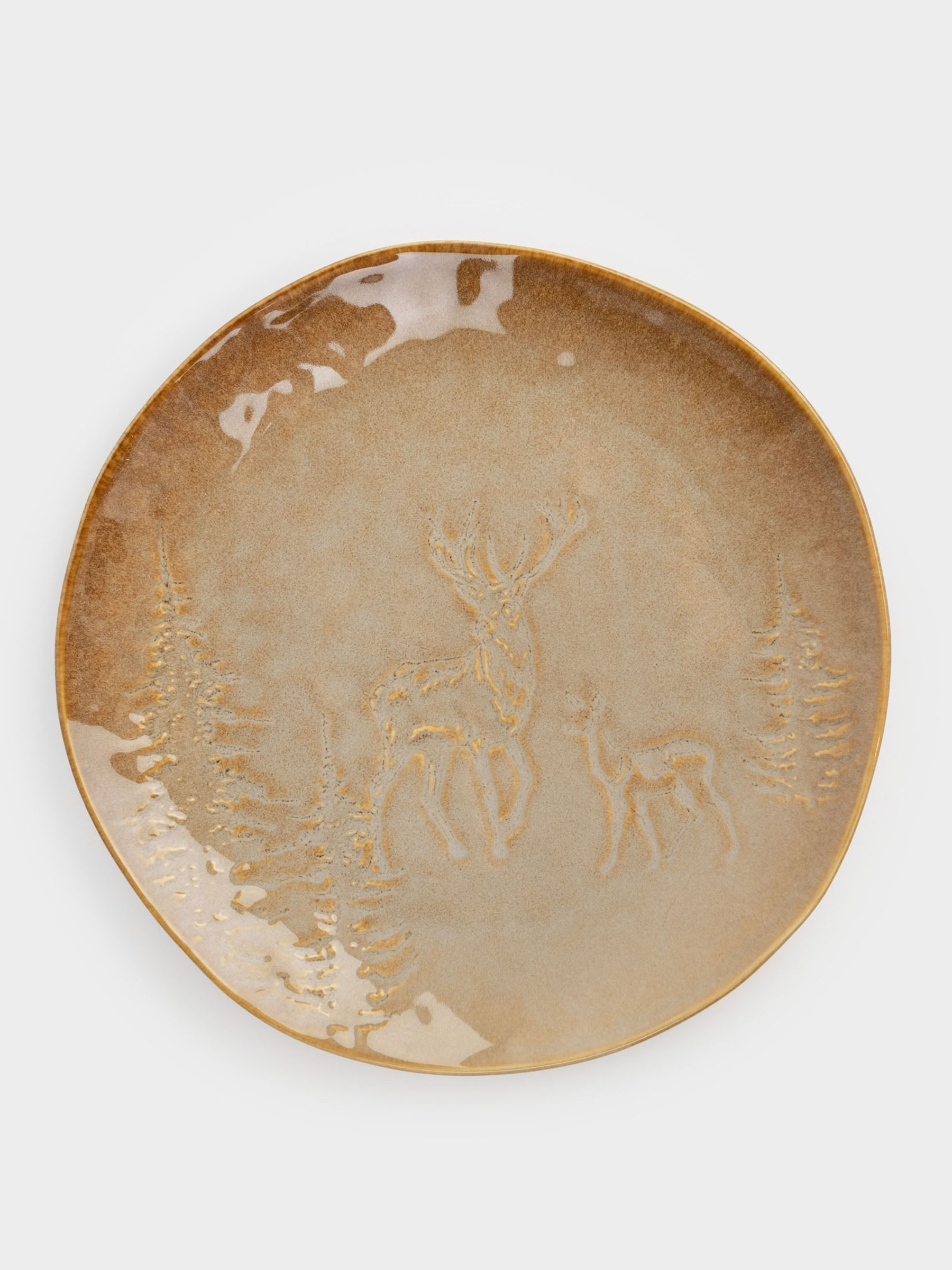 Ассортимент торговой марки Kuchenland пополнился новой линией столовой посуды из керамики Snowy forest. В нее вошли обеденная и десертная тарелки, салатник и кружка. Посуда выполнена в коричнево-золотоых оттенках, поверхность украшена рельефным декором.