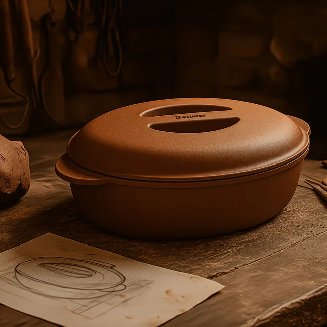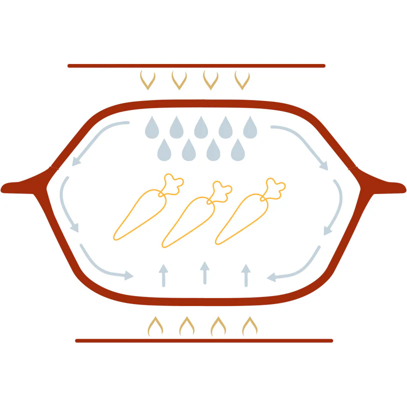 Глазированная внутренняя поверхность жаровень обладает хорошими гигиеническими свойствами и легко моется. В данной посуде можно готовить жаркое, запеканку, рагу, овощи, выпекать хлеб или даже десерт. Благодаря естественной регуляции влажности продукты получаются насыщенными, но не сухими.