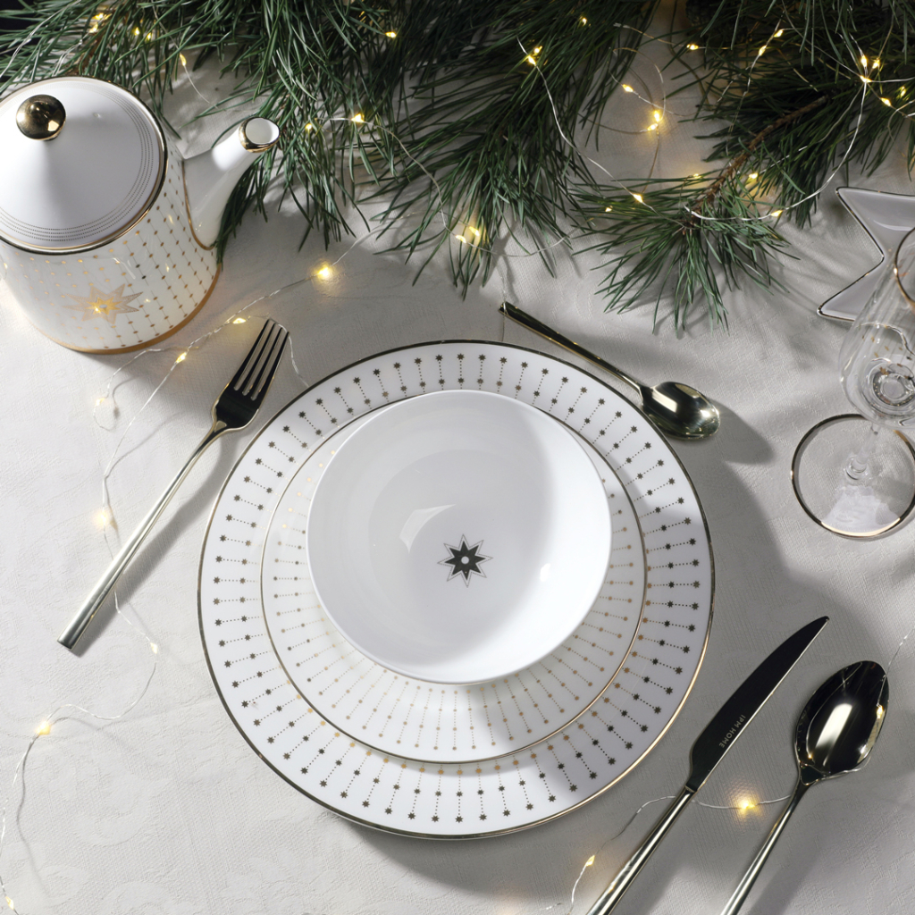 ИФЗ представил новинки в серии фарфора «Азур золотой». В продажу поступили бокал, салатник, обеденные тарелки. Сдержанный и изысканный декор «Азур Золотой» авторства Юлии Гайлис (Чистяковой) позволяет комбинировать предметы как самостоятельно, так и с другими коллекциями: «Азур», «Скарлетт», «Индиго», «Неро», «Астра», «Лайм», «Примула» и «Календа».