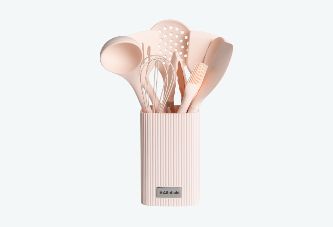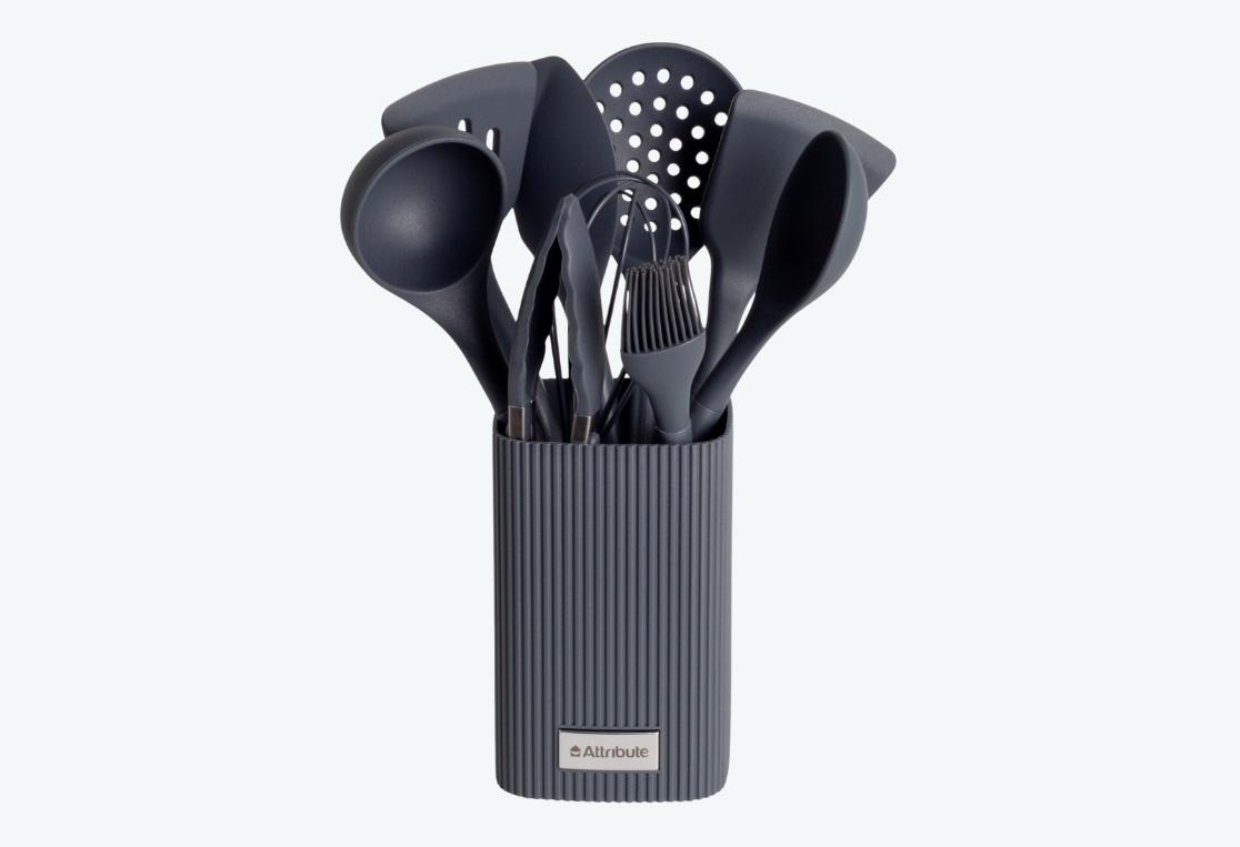Ассортимент торговой марки Attribute пополнился новыми наборами кухонных принадлежностей LAGOON, CREMAN и AZURE. Рабочие части инструментов выполнены из силикона и выдерживают температуру от -40 до 230 °C. В состав каждого набора входит подставка.
