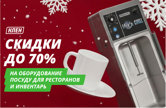 С 11 декабря 2025 года по 13 января 2026 года в компании "Клен" проводится новогодняя распродажа. Клиентов ждут скидки до 70% на оборудование, посуду для ресторанов и инвентарь.