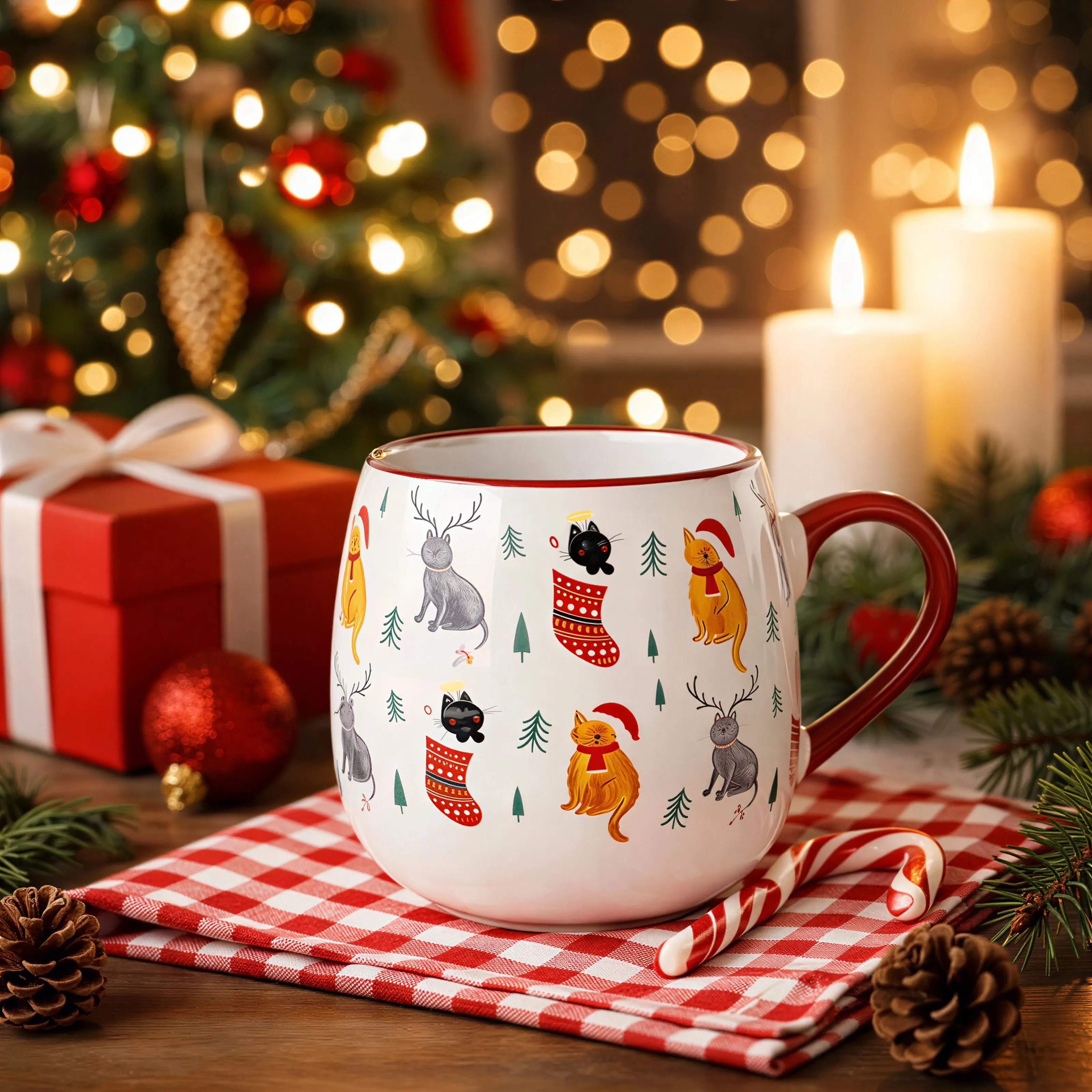 Торговая марка Esprado представила кружку Pulover. Изделие выполнено из фарфора, а округлая, шарообразная форма кружки напоминает ёлочный шар. Главный акцент декора — очаровательные кошки в новогодних и рождественских образах. Красные отводка и ручка выступают в качестве цветового акцента.