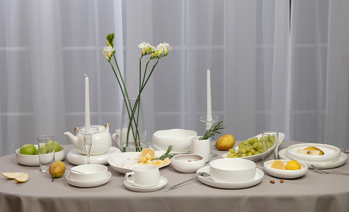3. Белый фарфор с мягкими линиями