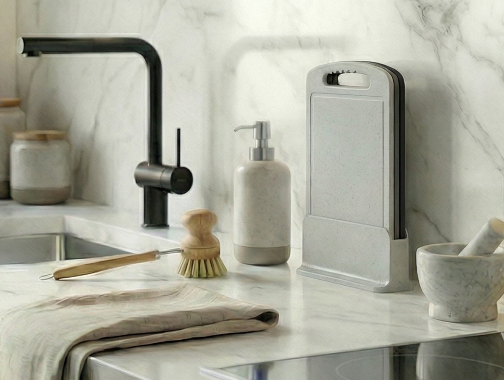 Компания "Мартика" представила новые наборы пластиковых разделочных досок на подставке. Изделия отличаются минималистичным дизайном, в комплект входят подставка с вентиляционными отверстиями.