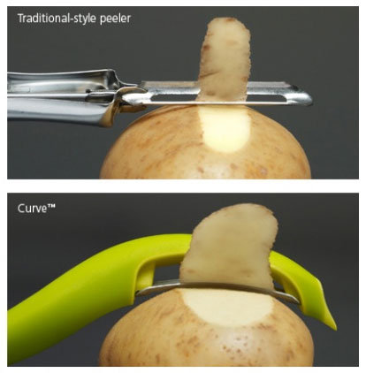 Этот округлый нож от Joseph Joseph для овощей служит наглядным примером того, как с помощью дизайна можно существенно улучшить обычный кухонный инструмент. Слегка загнутое лезвие Curve™ позволяет ему удалять значительно больше овощной кожуры по сравнению с традиционными ножами с прямыми лезвиями.