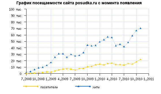 Постоянно растущая популярность сайта posudka.ru - свидетельство правильно выбранных нами приоритетов: оперативности, информационной насыщенности и острой актуальности поднимаемых тем для профессиональной аудитории. Также повышению посещаемости ресурса способствует активное развитие Интернета в качестве рабочего инструмента руководителей и специалистов, работающих на рынке посуды.
