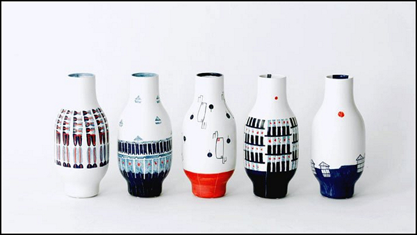 Особенности строения кварталов, жилых и промышленных зданий, геометрия улиц и площадей, и даже настенные надписи и росписи - Рене Россоув учитывала каждую мелочь, чтобы затем перенести ее на свой творческий проект, увековечив в двух цветах на гладких глиняных боках графинов, тарелок, кувшинов, бочонков и кружек.