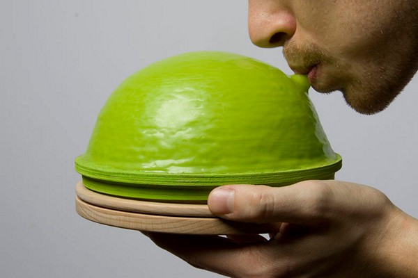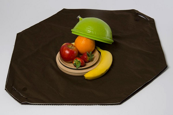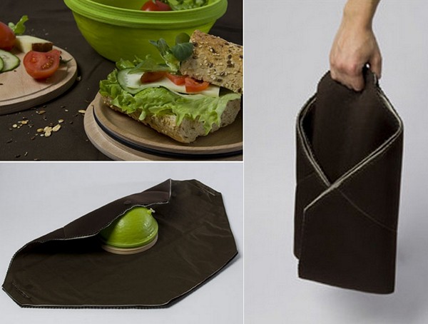 Особая деталь - надувная миска, которая может использоваться в качестве салатника или защитного купола в процессе транспортировки ланча из дома до офиса.
