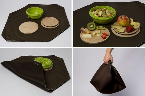 Все изделия, входящие в набор, многофункциональны. Деревянные круглые тарелки могут использоваться как по прямому назначению, так и в качестве разделочных досок или подставок под горячее. Комфортную транспортировку обеспечивает специальная сумка, которая трансформируется при необходимости в что-то подобное скатерти.
