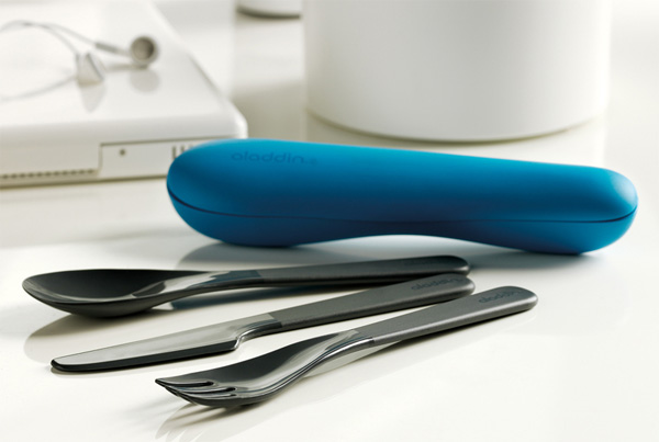 Марка Aladdin известна своим вниманием к людям, которым приходится принимать пищу вне дома. Ее новинка 2012 года, набор столовых приборов Papillon, имеет все шансы стать бестселлером. Пластиковые нож, вилка и нож производятся из безопасного и экологичного пластика и имеют специальный стильный контейнер. Набор отлично подойдет для путешествий, пикников и внеофисных обедов.