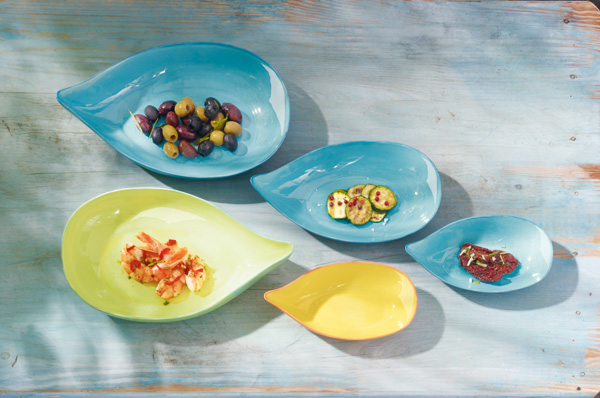 Один из лидеров немецкого рынка керамической посуды, компания ASA Selection, в своей новой коллекции представила несколько новинок на "отпускную" тематику. Серия St. Tropez - одна из них. Названная в честь знаменитого французского курорта, St. Tropez отличается яркими и радующими глаз красками Средиземноморья и естественными формами то ли фруктов, то ли больших листьев. St. Tropez подойдет как для домашнего использования, так и для ресторанов и кафе со средиземноморской кухней, а также для фуршетов, если у их устроителей будет желание сделать мероприятие менее формальным.