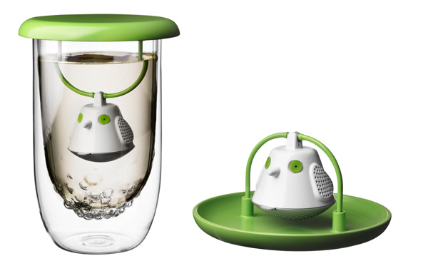 QDO - это молодая датско-гонконская компания, покорившая в этом году Ambiente своим оригинальным дизайном и позитивной энергетикой. T-bird - это устройство для заварки чая, состоящее из ситечка в форме птицы и специальной крышки, которая не только удерживает ситечко в бокале, но и служит своеобразной подставкой, которая не дает каплям попасть на стол или скатерть. Рекомендуется для использования с не менее оригинальной термокружкой из стекла.