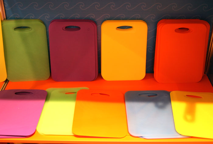 Последняя новинка, о которой пойдет речь, была представлена на выставке HouseHold Expo компанией «Архимед». Это молодое предприятие, специализирующееся на выпуске различных изделий из пластика. Наше внимание привлекли гибкие пластиковые доски из полиэтилена. Изделия отличаются яркими и насыщенными цветами, продуманным дизайном и своими бактериологическими свойствами, которые обеспечивает наличие в составе пластика ионов серебра.