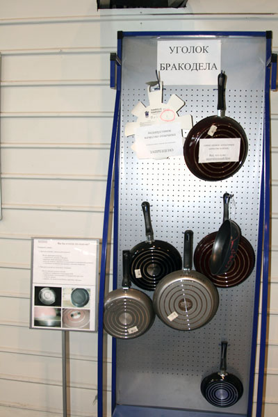 Особое внимание на заводе уделяют контролю качества. Образцы продукции, которая не должна попадать на полки магазина, собрана в "Уголке бракодела".