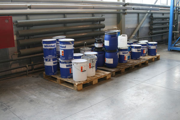 Потом на них наносят антипригарное покрытие, которое привозится и хранится в специальных емкостях.