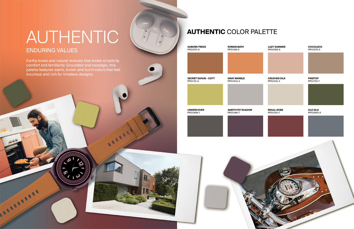Authentic - палитра, основанная на землистых тонах и природных текстурах, вызывает ощущение простоты, удовлетворения и близости.