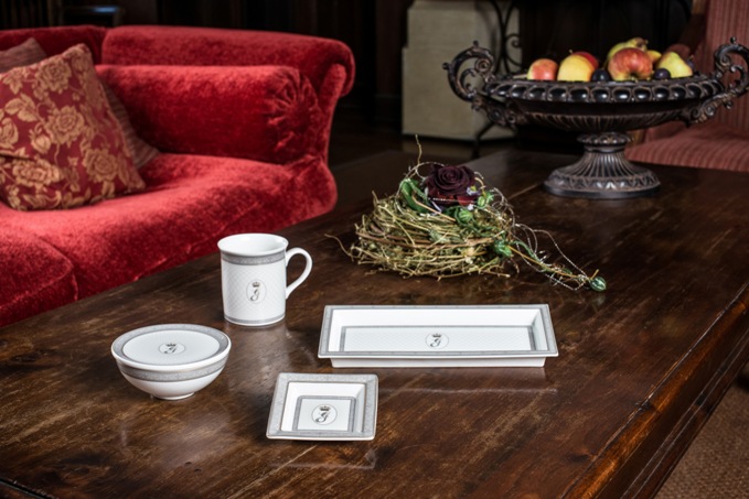 В коллекцию войдет салатник, прямоугольное блюдо, бонбоньерки и кружка с ручкой. Каждое из изделий будет выпущено тиражом лишь в 200 экземпляров. Серия создана с использованием костяного фарфора Premium, элементы декора включают в себя золото и платину.