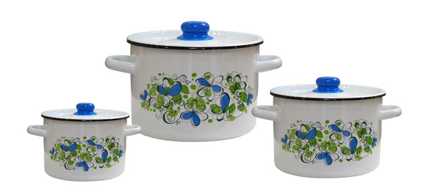 В конце октября в продажу в компании "Эмалика" поступит новый набор эмалированной посуды 1с144 с деколью "Завитки", который впервые был представлен на обозрение публики на минувшей выставке HouseHold Expo в сентябре.