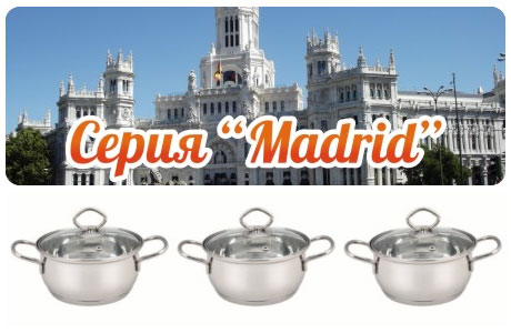 Ассортимент компании "Гала-центр" пополнился новыми сериями посуды из нержавеющей стали: "Paris", "London", "Madrid", "Milano".