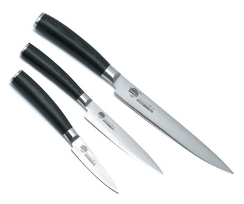 Лезвия ножей Takashi и Yanagiba имеют сердцевину из стали VG-10 и обкладки из дамаска SUS 430 и SUS 431. Рукоятки ножей Takashi выполнены из материала «Микарта», а ножей Yanagiba из материала Carbon Fibre.