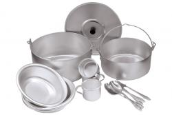 В наборе «Походный» мы собрали все самые необходимые предметы: котелки объемом 3,5 и 6 литров, ложки и вилки, кружки и тарелки. Все это можно носить в поход в удобной сумке, которая также входит в комплект.