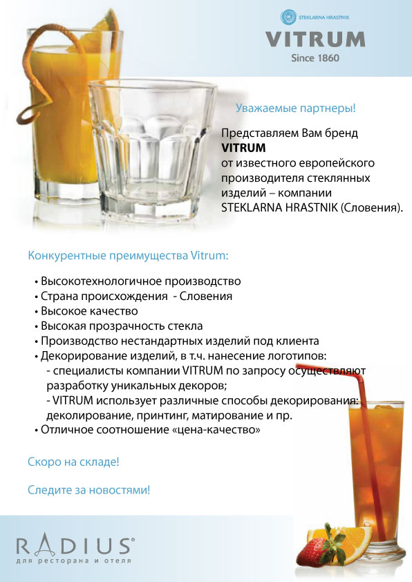 Компания "Радиус" представила новинку – стеклянные изделия торговой марки VITRUM производства словенской компании Steklarna Hrastnik L.l.c.