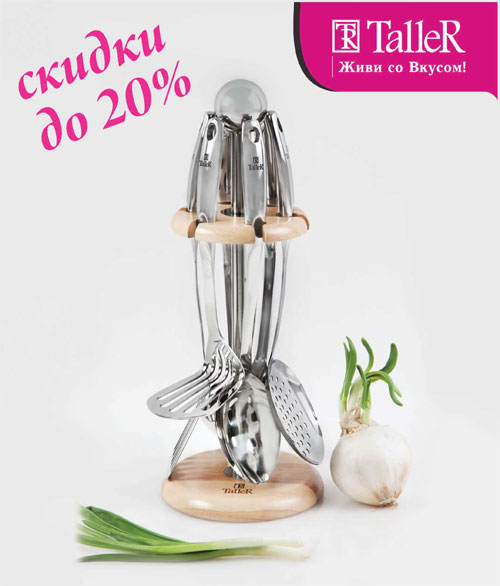 Торговая марка TalleR открывает майскую распродажу для оптовых клиентов. В акции представлены наборы посуды TR 1017, TR-1027 и TR-1037, кастрюли на 2 и 5 литров, сковороды из нержавеющей стали, набор ножей TR-2003. Так же представлен большой ассортимент аксессуаров – формы для выпечки, салфетницы, соусник, поднос и другие полезные мелочи для кухни.