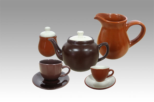 Компания "Ломоносовская керамика" сообщает об открытии нового направления в производственной деятельности. Клиентам предлагается две линии цветной керамической посуды, каждая из которых оформлена в двух цветовых тонах (коричневый-кремовый, терракотовый - кремовый), а также и одна линия с терракотовым покрытием. Во всех линиях сочетаются глянцевое и матовое покрытия.