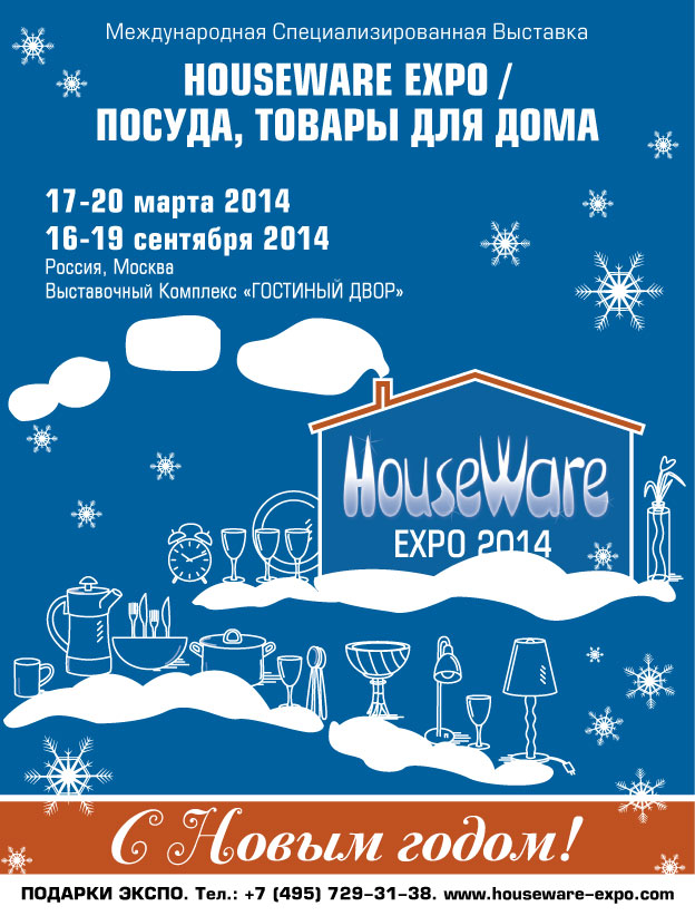 Организатор крупнейшего в Восточной Европе Международного выставочного проекта «ПОДАРКИ» - «НОВЫЙ ГОД ЭКСПО» - «HOUSEWARE EXPO / ПОСУДА, ТОВАРЫ ДЛЯ ДОМА» сердечно поздравляет Вас с наступающим Новым Годом и Рождеством! Желаем Вам крепкого здоровья, личного счастья, успешного решения поставленных задач, стабильности и процветания Вам и Вашему бизнесу.
