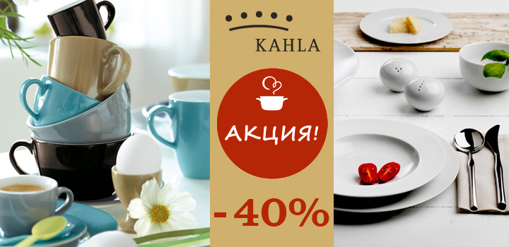 В магазинах COOK HOUSE проходит акция на фарфоровую посуду немецкой марки Kahla. На данную продукцию действует скидка 40%.