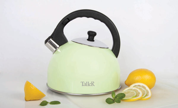 Торговая марка TalleR представила новинку - чайник из нержавеющей стали со свистком Эммерсон объемом 2.5л, арт. TR 1351. Чайник выполнен из нержавеющей стали и имеет термостойкое внешнее цветное покрытие.
