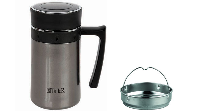 Торговая марка TalleR представила новинку - термокружку Бэйли, арт. TR 2411. Изделие изготовлено из нержавеющей стали и пластика. Объем кружки - 450 мл.