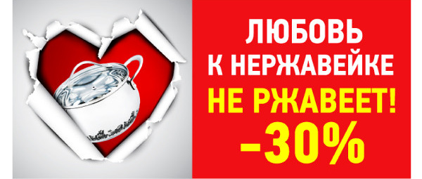 До 15 апреля в магазинах «Семь Холмов – Предметы кухни» действует скидка 30% на посуду из нержавеющей стали серий Art и Grey.