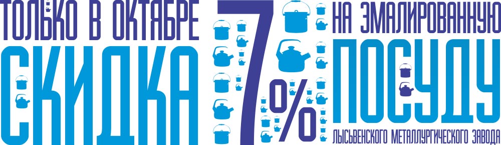 В октябре 2015 года в компании "Уральская корона" действует скидка 7 % на продукцию Лысьвенского завода эмалированной посуды. В акции участвуют следующие товары: